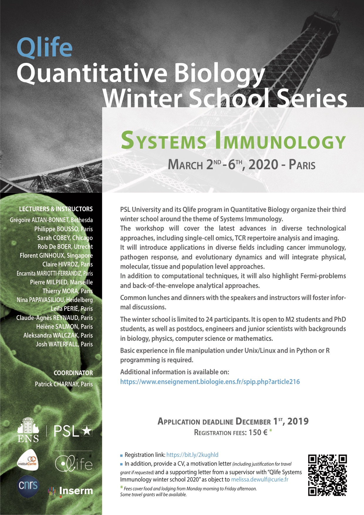 Cette formation est organisée par l’Université Paris Sciences et Lettres (PSL) et Qlife (programme de biologie quantitative).
